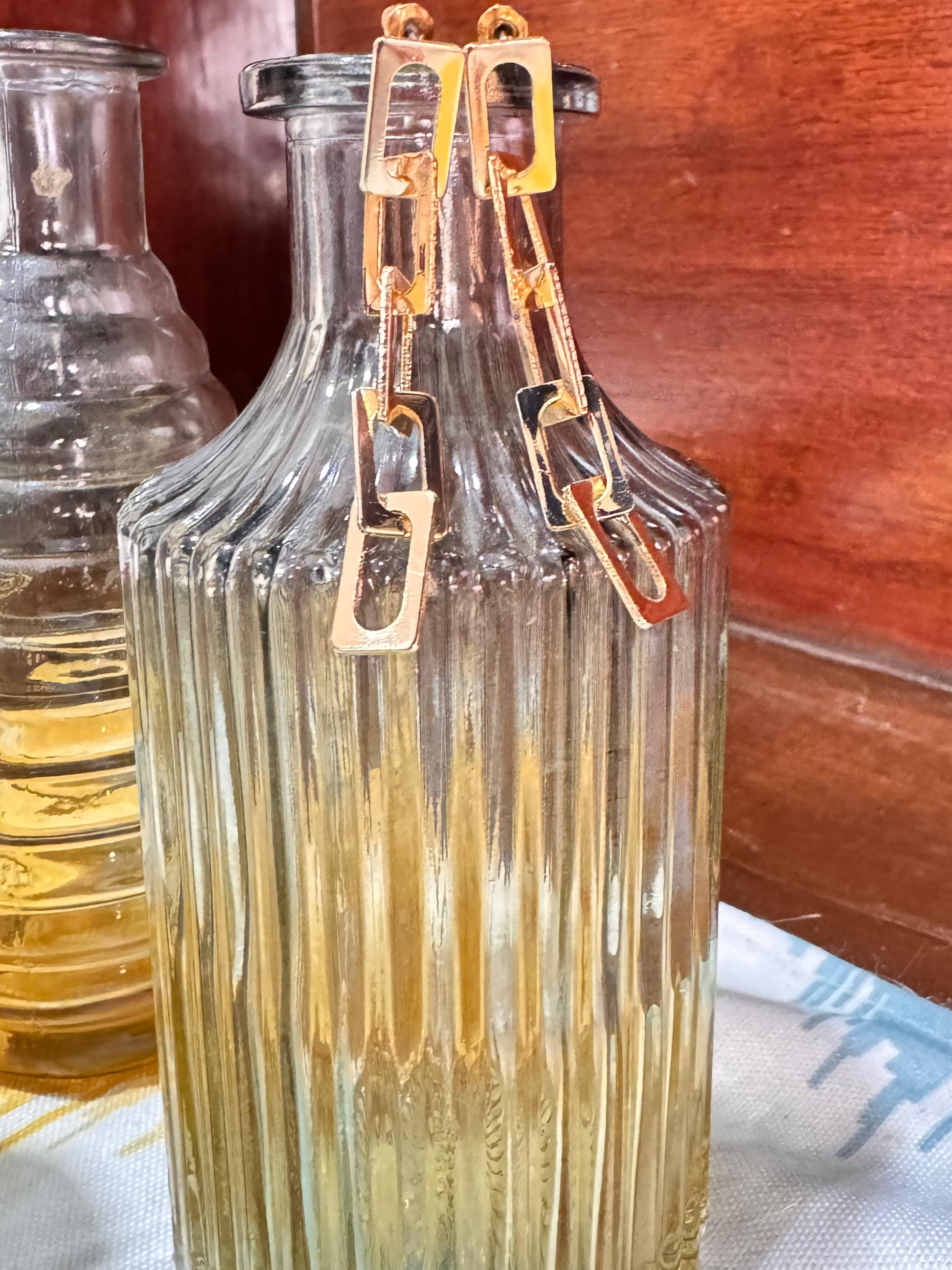 Discover the exquisite artistry of the Gold Interlink Earrings by Erica Jewelry. These stunning earrings showcase a delicate yet bold series of interlinked gold-plated elements, designed to catch the light and draw attention.