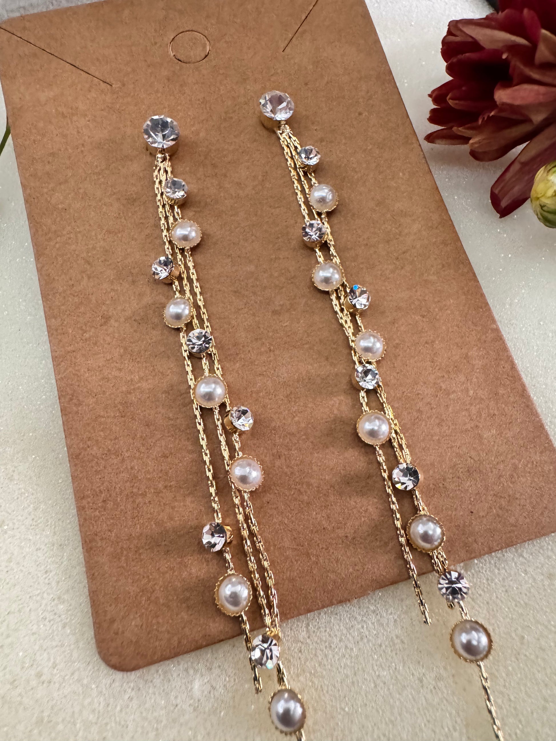 These dreamy tassel earrings are a delicate fusion of romance and refinement, featuring cascading strands adorned with sparkling diamonds and lustrous pearls. The soft blush of rose gold pairs beautifully with the gentle shimmer of pearls and the brilliance of diamonds, creating a look that's ethereal, feminine, and effortlessly elegant — perfect for special occasions or moments you want to make unforgettable.